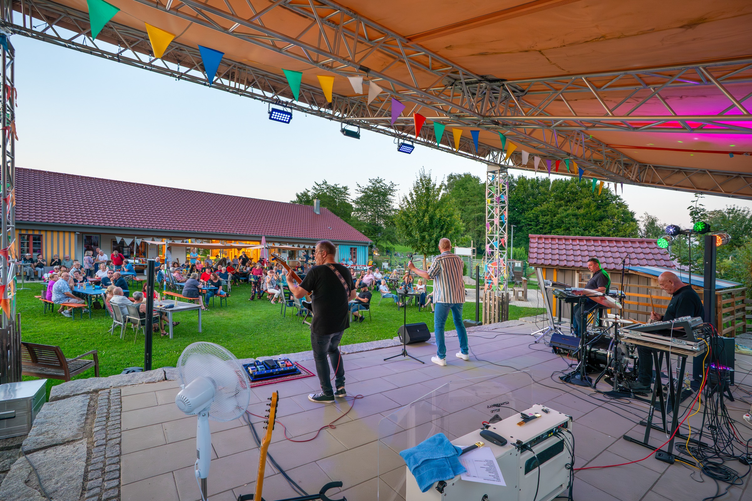 Bewirtung gibt es ab 19 Uhr — der Eintritt ist frei; wir sammeln mit dem Hut für die Band. Wir freuen uns auf einen warmen, chilligen Sommerabend!